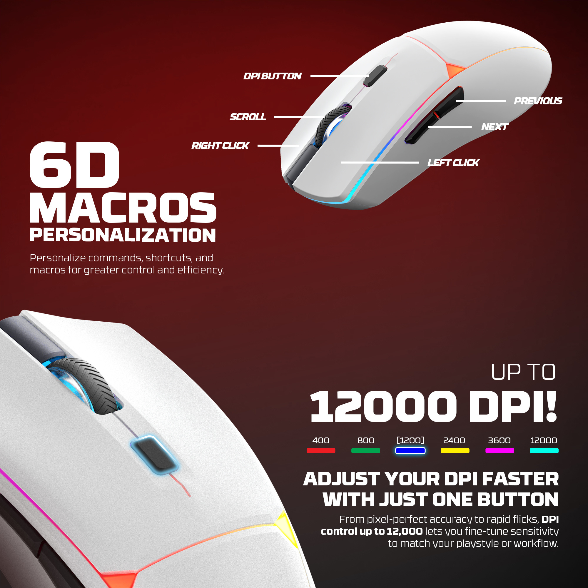 ✅12000DPI , Speed 120IPS