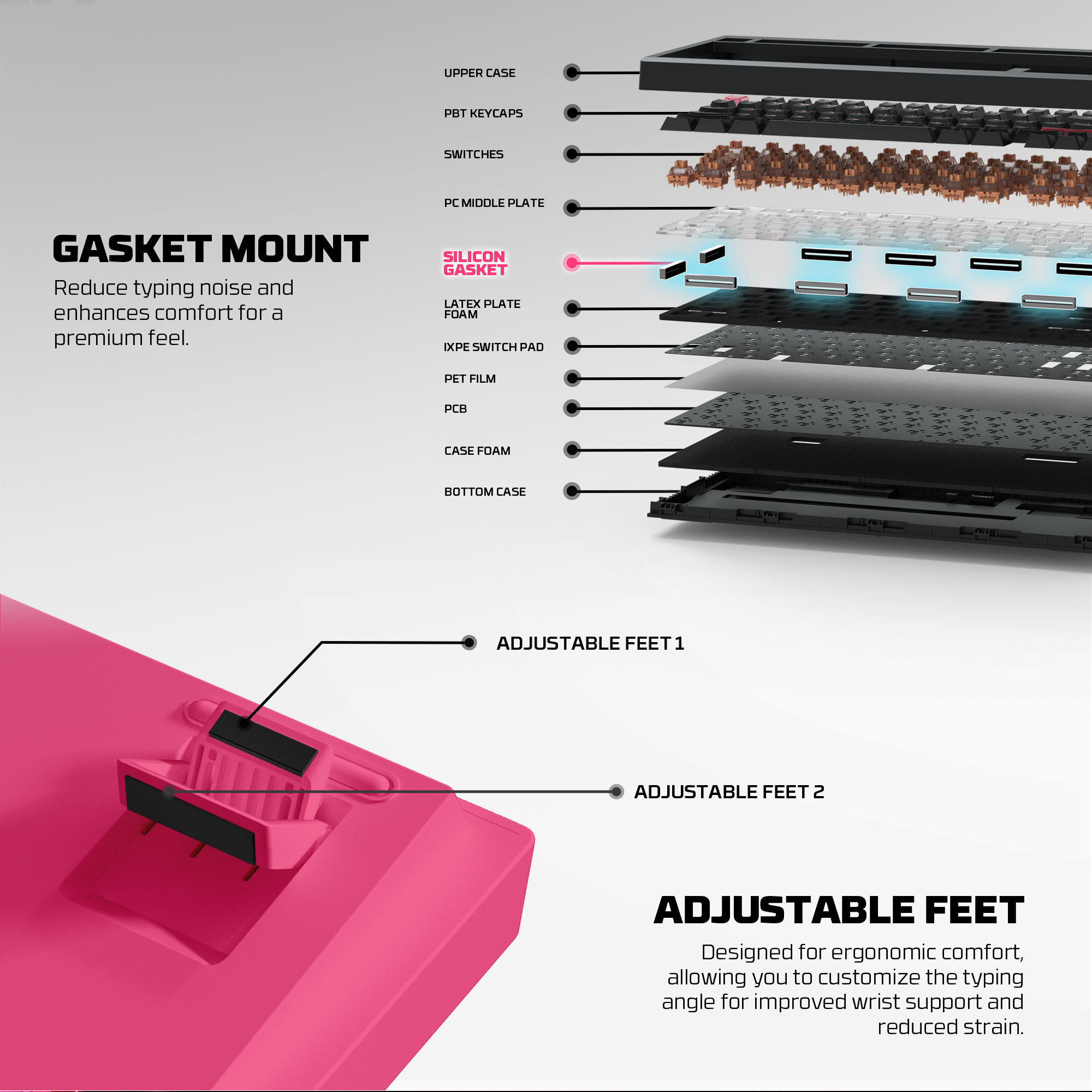 ✅ Double Injection Keycaps with 3 Color Combination